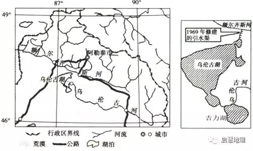 乌伦古湖距福海县14公里,由大海子布伦托海和小海子吉利湖两个水域组成,由库依尕河相连,面积1000平方公里,乌伦古河是养育它的母亲河。