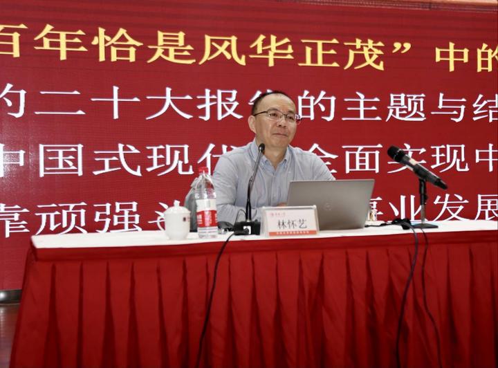 华侨大学博士生导师林怀艺教授作《充满光荣和梦想的远征——学习贯彻党的二十大精神》的专题讲座。