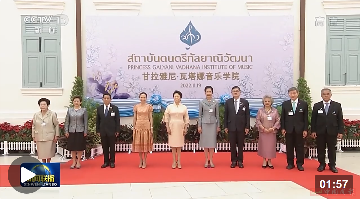 当地时间19日上午,国家主席习近平夫人彭丽媛在泰国总理夫人娜拉蓬陪同下参观甘拉雅尼音乐学院。