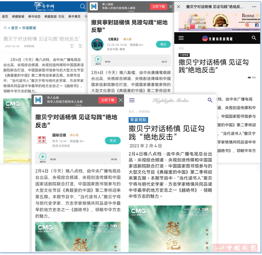 未播先热!这部当代人几乎闻所未闻的千古“奇书”,一下子吸引了海内外网民目光。海内外诸多媒体迅速关注,纷纷报道。截至目前,欧洲华语广播电台、匈牙利联合报、北欧时报等数十家海外媒体对第二季内容的转发和报道,已辐射10多个国家和地区,在海外再次掀起“典籍热”。