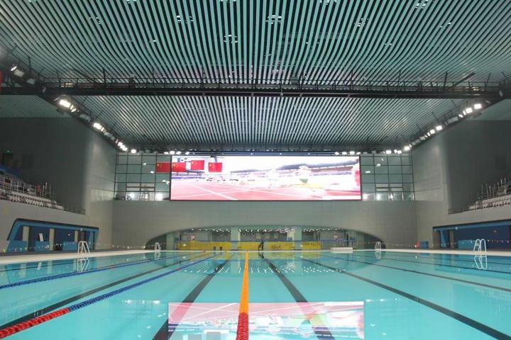 黄龙体育中心游泳跳水馆,是杭州亚运会水球比赛场馆,可容纳4000余名观众。该馆在改造中的最大特色为拼装泳池,长50米、宽25米、深2米的标准泳池,相对于普通土建游泳池而言,具有适应场地、重复利用、不损坏场地设施等特点,有助于提高场馆利用率。