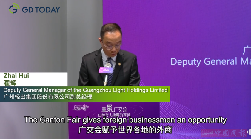 广州轻出集团股份有限公司副总经理翟辉:广交会赋予世界各地的外商一次旅程就结交行业内最多供应商的机会。
