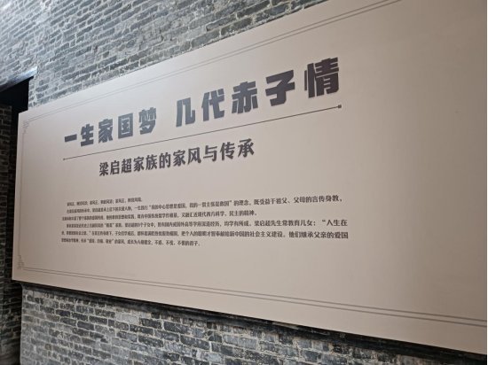 梁启超纪念馆位于故居南侧,建筑形式中西合璧,既有晚清岭南侨乡建筑韵味,更隐现天津饮冰室风格。馆内的展览分7个部分,以不同的专题、不同的层面,展示梁启超作为中国近代史上杰出的爱国政治活动家、思想家,享誉中外的学术巨擘和书法大家的风采。