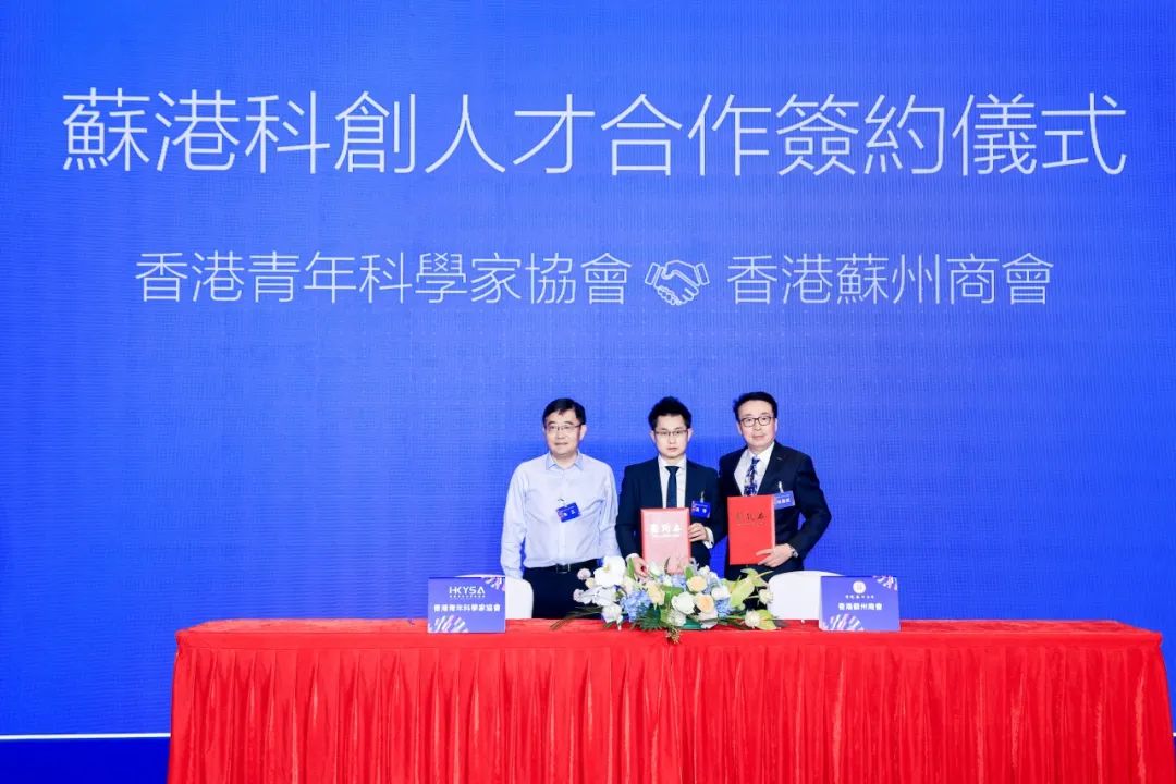 交流会现场,香港青年科学家协会博士团神州行苏州站正式启动。苏港科创人才合作签约、苏州港澳青年科研中心揭牌、苏港科创基金(筹)启动等依次举行,助力苏港两地科技人才交流与科创产业升级。