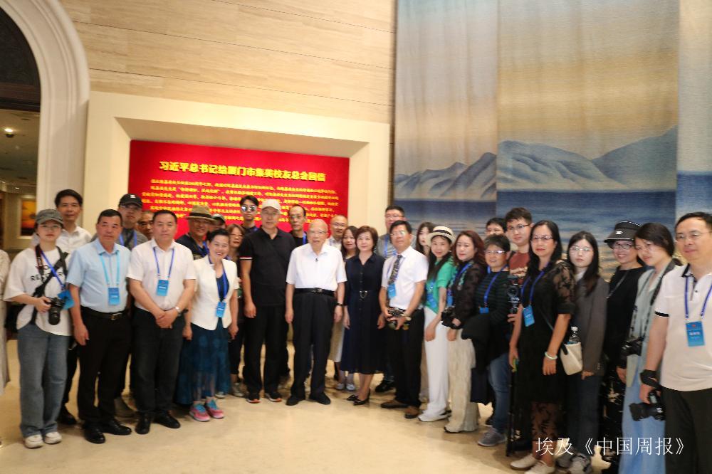 集美校友总会永远名誉会长任镜波先生与采访团合影