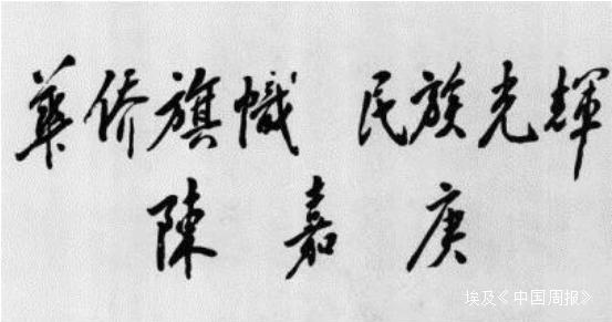 毛泽东主席为陈嘉庚先生题词“华侨旗帜,民族光辉”