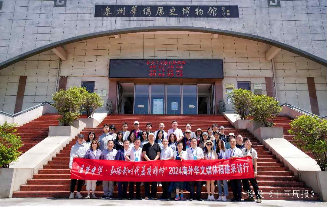 海外华文媒体福建采访团在泉州华侨历史博物馆前合影