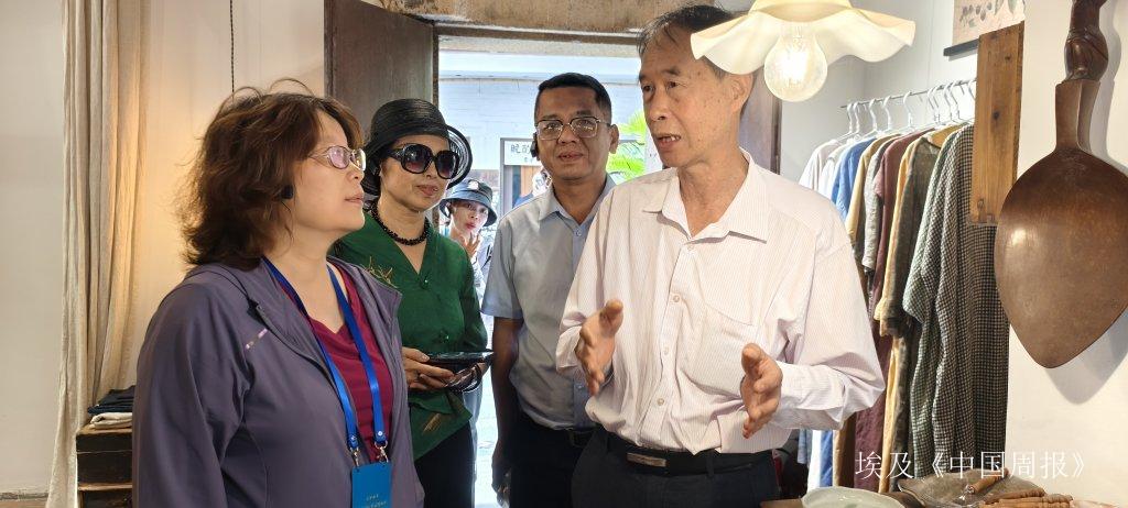 陈嘉庚侄孙陈忠信给采访团成员讲述嘉庚先生的故事