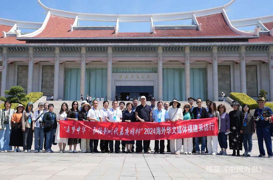 海外华文媒体福建采访团在福建华侨主题馆合影