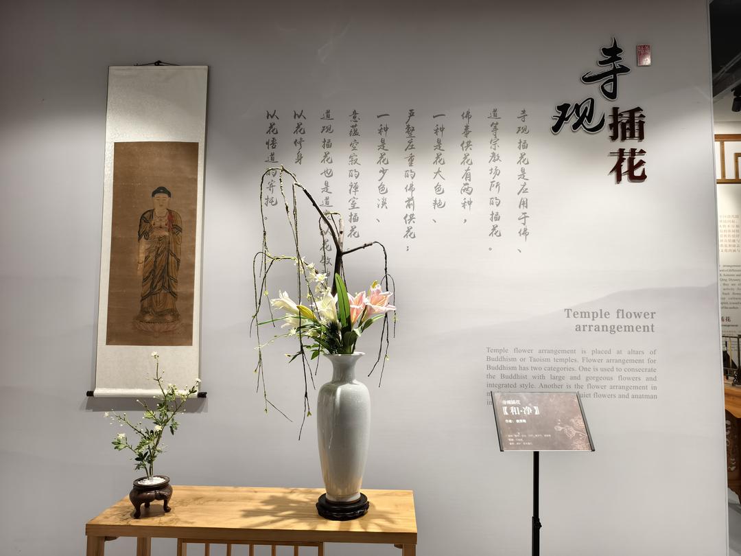 走进艺术馆,一件件精美的插花作品令人赏心悦目。从展现牡丹仙子飘然降临的《富贵清廉》,到各类传统时令插花作品,无不体现了中国传统插花的精湛技艺和独特审美。此外,馆内还陈列了来自中国台湾地区,日本、韩国、马来西亚、泰国以及欧洲的优秀插花作品,展现了插花艺术的国际交流与融合。