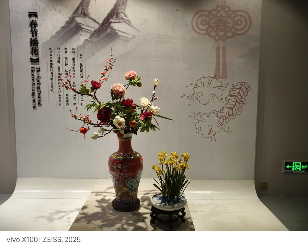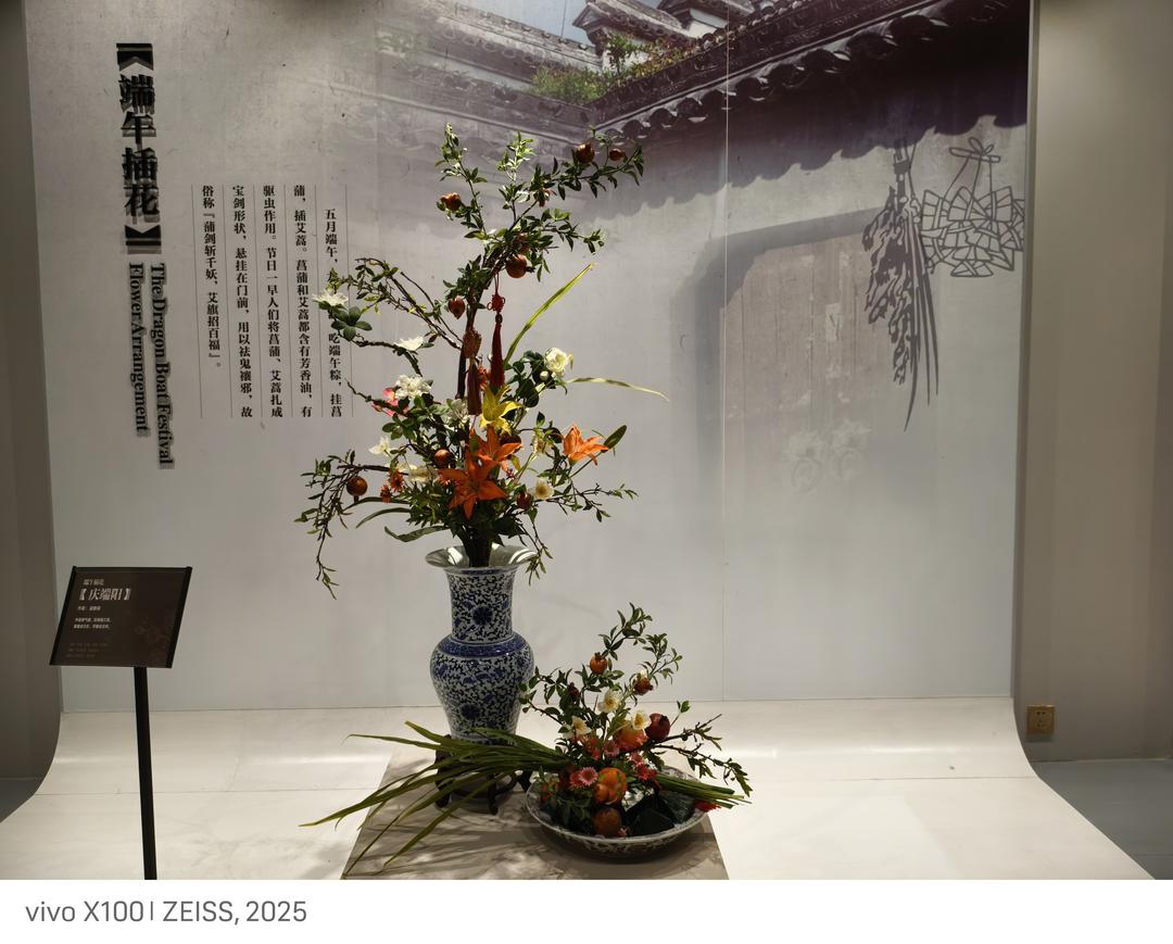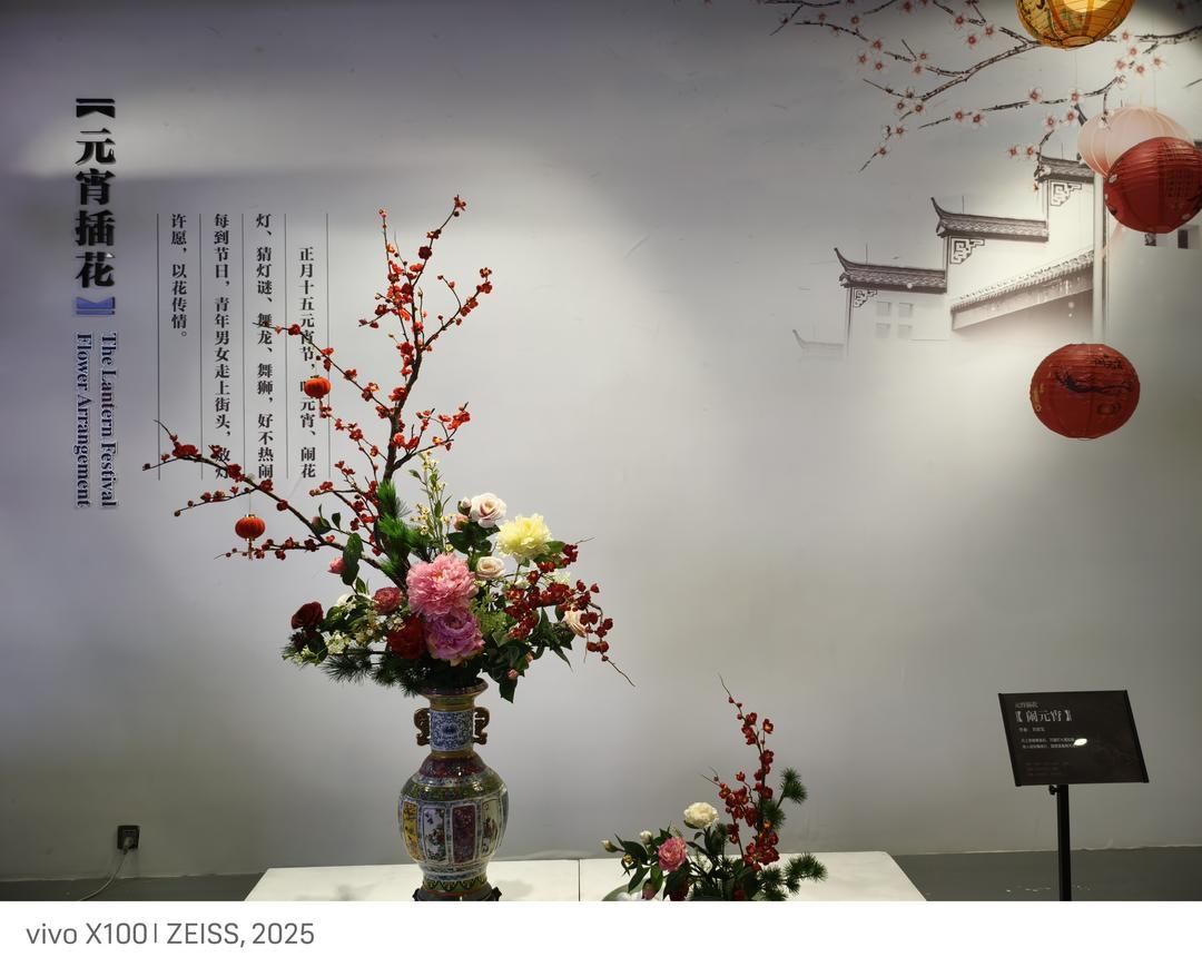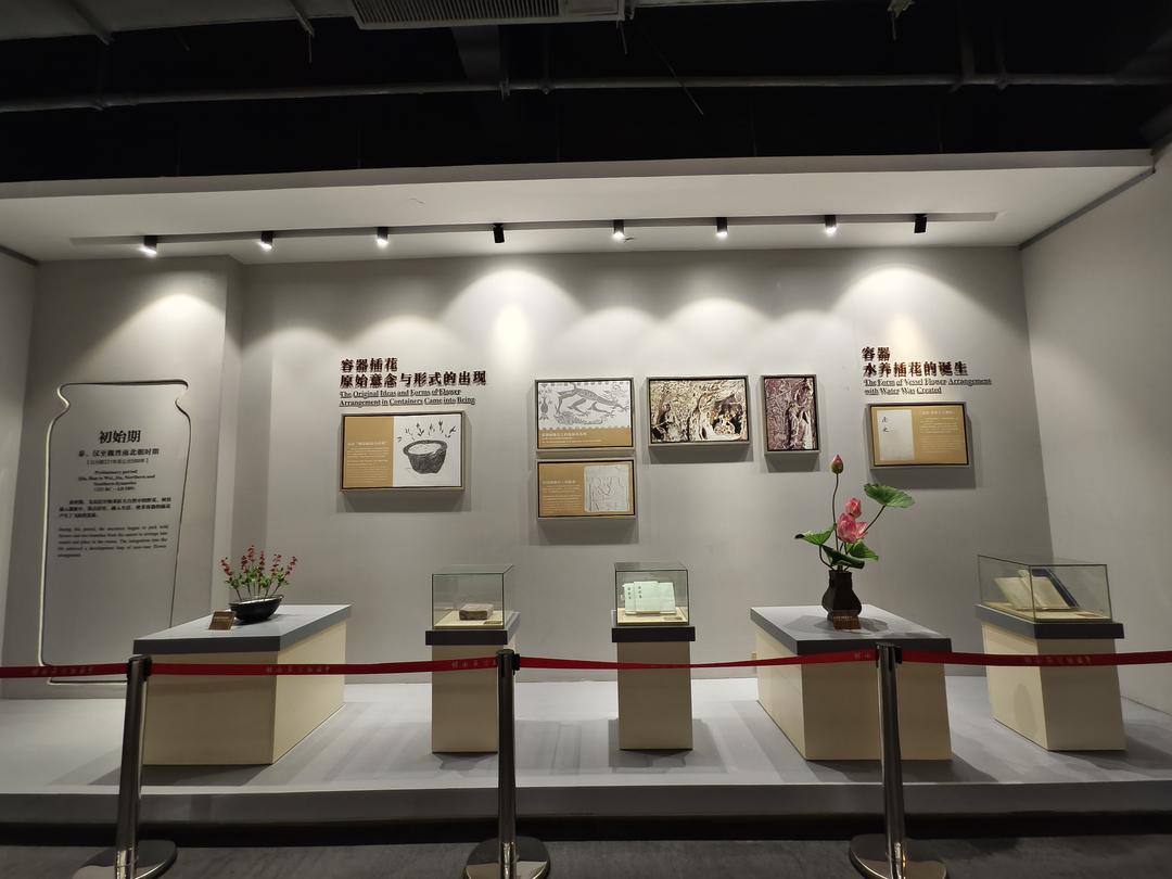 馆内展厅以时间为轴,串联起中国插花艺术的发展肌理。新石器时代的陶罐上,原始先民以野花插饰的生活痕迹清晰可辨;唐代展厅中,复原的“金銮殿插花盛景”重现宫廷花艺的雍容华贵,牡丹、芍药与孔雀羽翎的搭配,尽显盛唐气象;宋代展区则以“文人四艺”为核心,通过《梦粱录》文献复刻与插花场景复原,展现士大夫阶层“清供雅玩”的生活哲学。最引人注目的是明代古画《金瓶梅插图》中的插花场景还原,瓷瓶、折枝与蔬果的组合,映射出市井文化中的花艺审美。