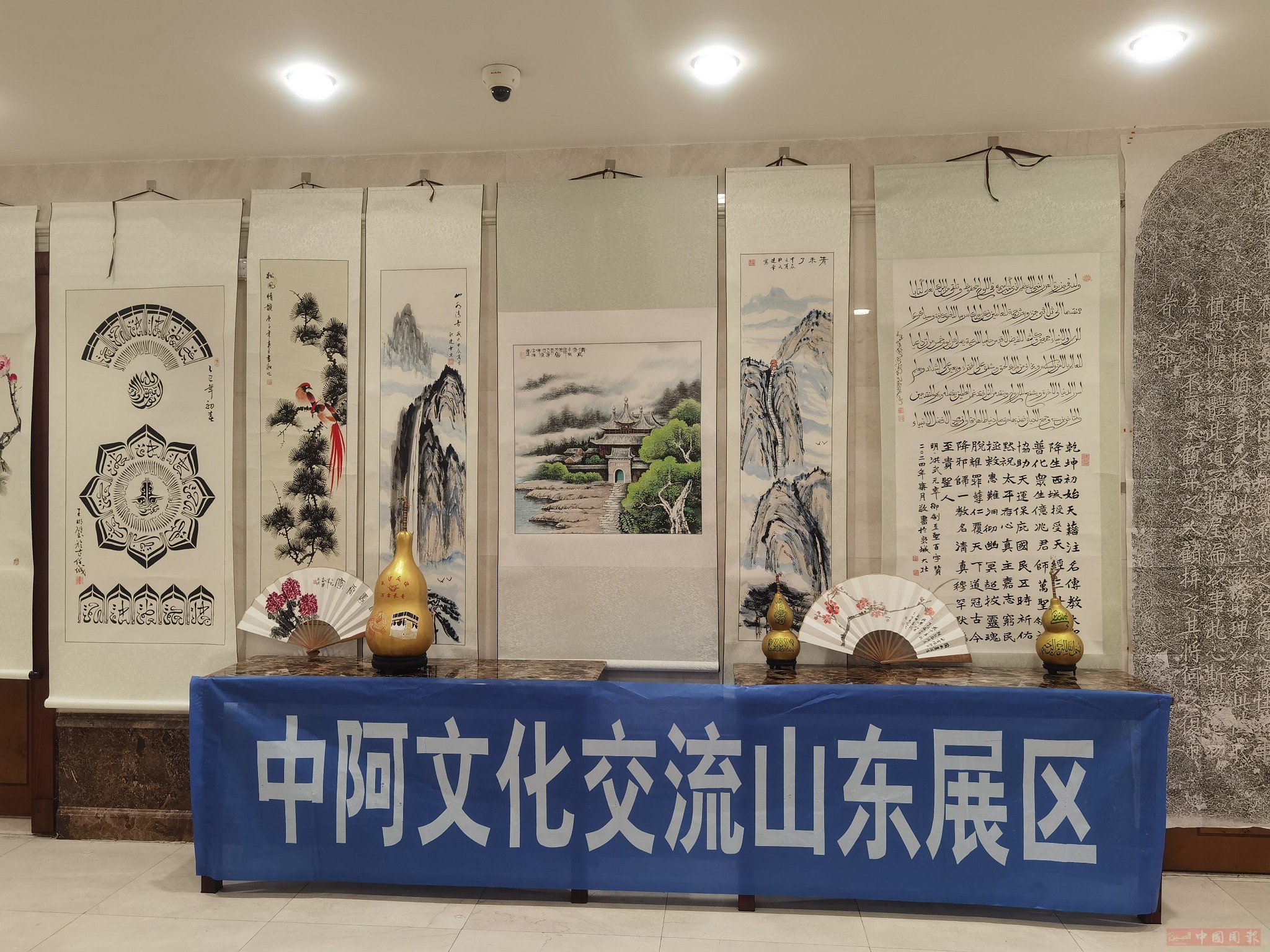 活动共征集来自山东各界群众的30余件书画及非遗手工作品,山东省朝觐团严格筛选,最终精选20余幅(件)主题鲜明、艺术精湛的作品进行了展览。展品涵盖工笔画、传统清真寺写生、葫芦雕刻、碑拓、阿文书法等艺术形式,既描绘了祖国壮丽山河与花鸟意境,也呈现了中沙友谊的历史渊源。尤为引人注目的是明代回儒陈思《来复铭》、清代孔令贻为清真寺题写的《道合儒宗》拓片及明洪武《百字赞》,三件文物级展品生动诠释了“伊儒会通”的文化传统和历史渊源,成为展览的研究与传播亮点。