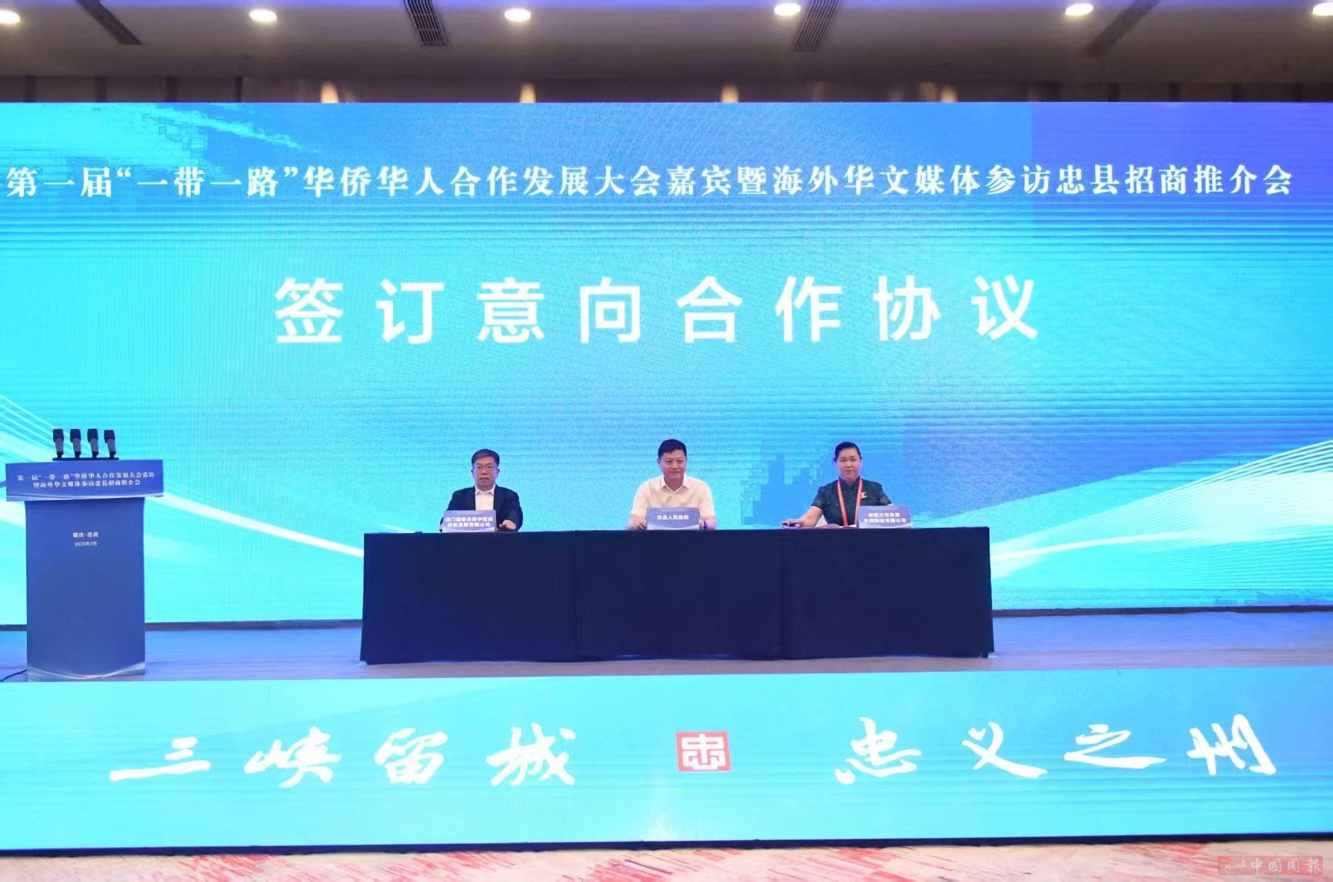 7月18日下午,第一届“一带一路”华侨华人合作发展大会嘉宾暨海外华文媒体参访忠县招商推介会在重庆忠县举行,现场举行招商推介并签约。