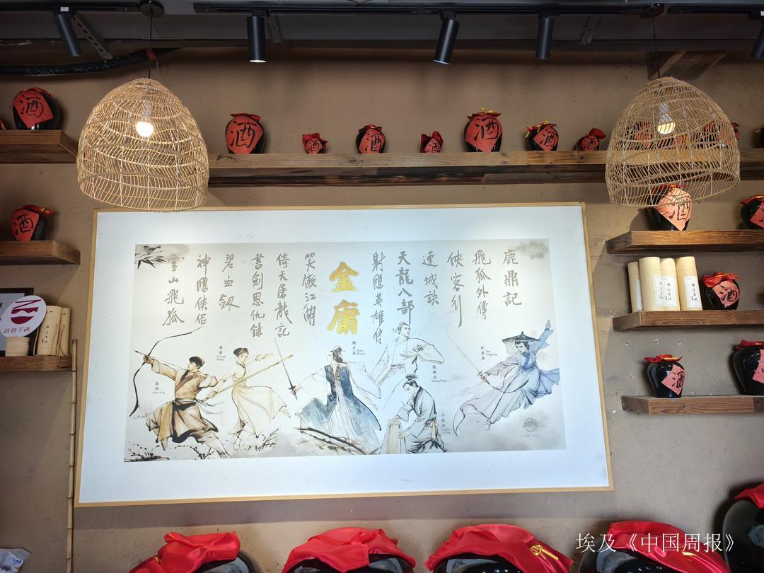 走进村庄,武侠气息扑面而来。金庸大道两侧“武”字旗猎猎作响,白墙黛瓦间绘满武侠人物和武打场景。