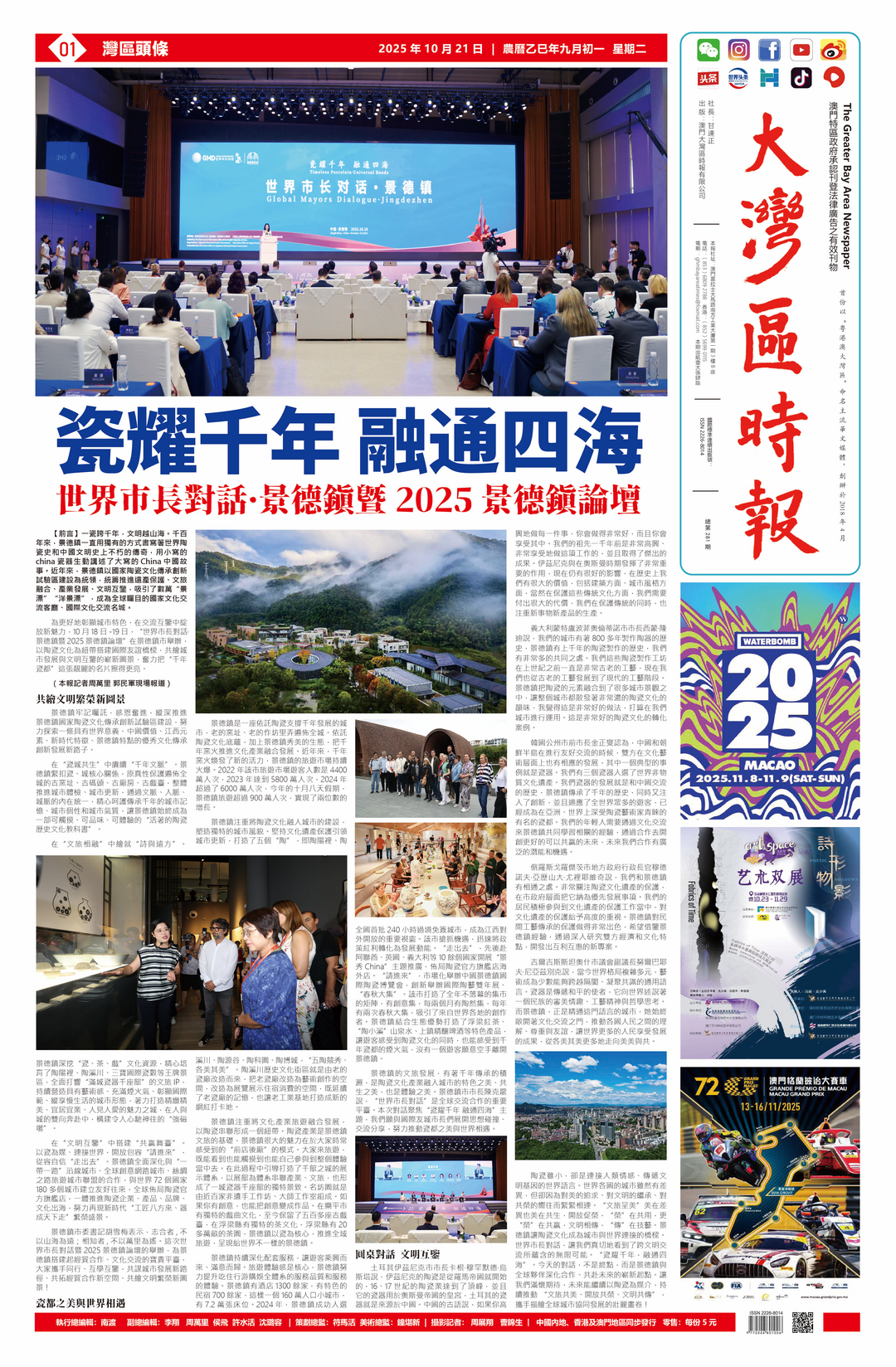 为更好地彰显城市特色,在交流互鉴中绽放新魅力,10月18日-19日,“世界市长对话·景德镇暨2025景德镇论坛”在景德镇市举办,以陶瓷文化为纽带搭建国际友谊桥梁,共绘城市发展与文明互鉴的崭新图景,奋力把“千年瓷都”这张靓丽的名片擦得更亮。