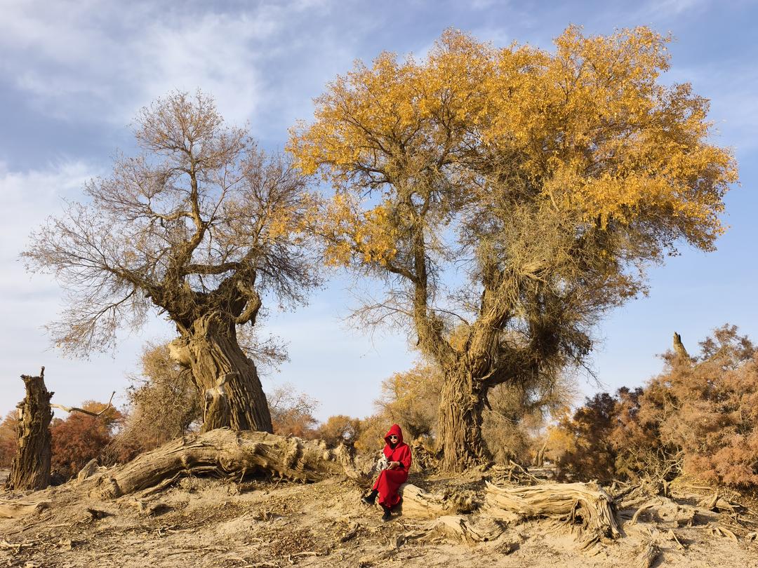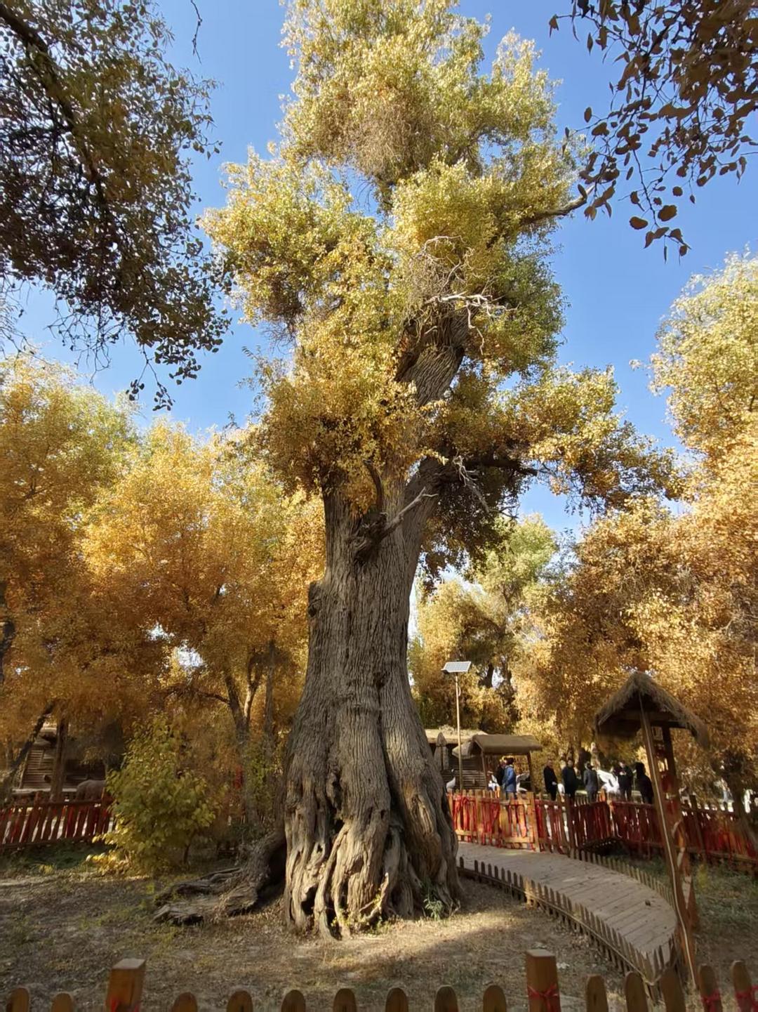 “委内瑞拉《委国侨报》副社长郑海燕忍不住用镜头贴近纹理,“每一道裂痕都像在讲述它如何在干旱沙漠里扎根生长,这种生命力太震撼了。”采访团成员纷纷围着“胡杨王”拍摄、记录,试图将这份跨越千年的“树魂”传递给海外受众。