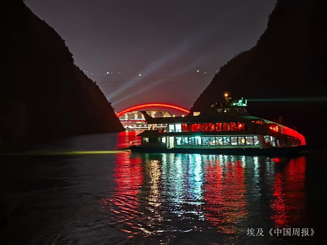 【中国周报】巫山报道(记者茜茜)华灯初上,巫峡披彩。11月21日,“追梦中华·新韵重庆”2025海外华文媒体重庆采访行一行,登上“三峡之光”主题游船,开启了一场12公里的长江情境夜游。70分钟的航程中,媒体代表们穿行于墨色江面,沉浸式感受山、水、峡、城与光影科技的完美交融,在巫峡夜色中读懂三峡文化的深厚底蕴,用镜头捕捉重庆夜间文旅的璀璨新韵。