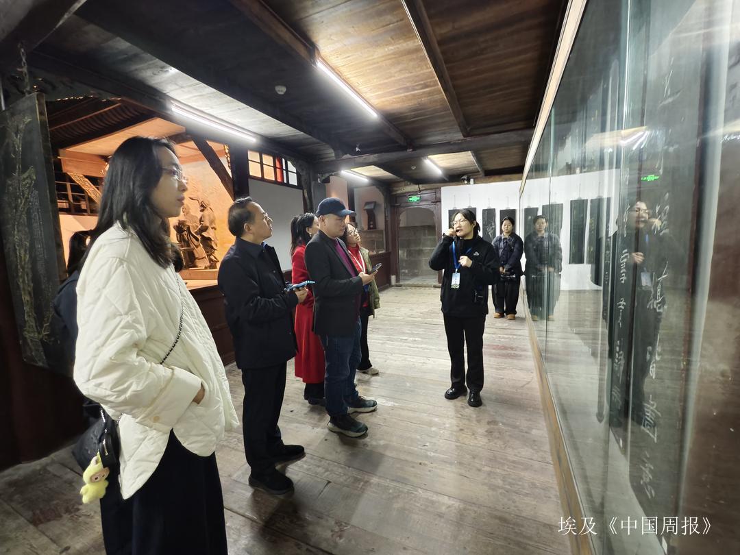 媒体代表们沿中轴线缓缓而行,先后参观了结义楼、正殿、助风阁、杜鹃亭等主要建筑。在讲解员的细致解说下,张飞“忠肝义胆、勇猛刚强”的形象变得愈发鲜活。庙内珍藏的大量汉唐以来的石刻、木刻、书画珍品,特别是岳飞手书的诸葛亮《前出师表》等,更让海外媒体人惊叹不已,纷纷驻足拍摄,深刻体会到这座庙宇不仅是武将的祭祀之所,更是一座承载着千年文脉的艺术宝库。