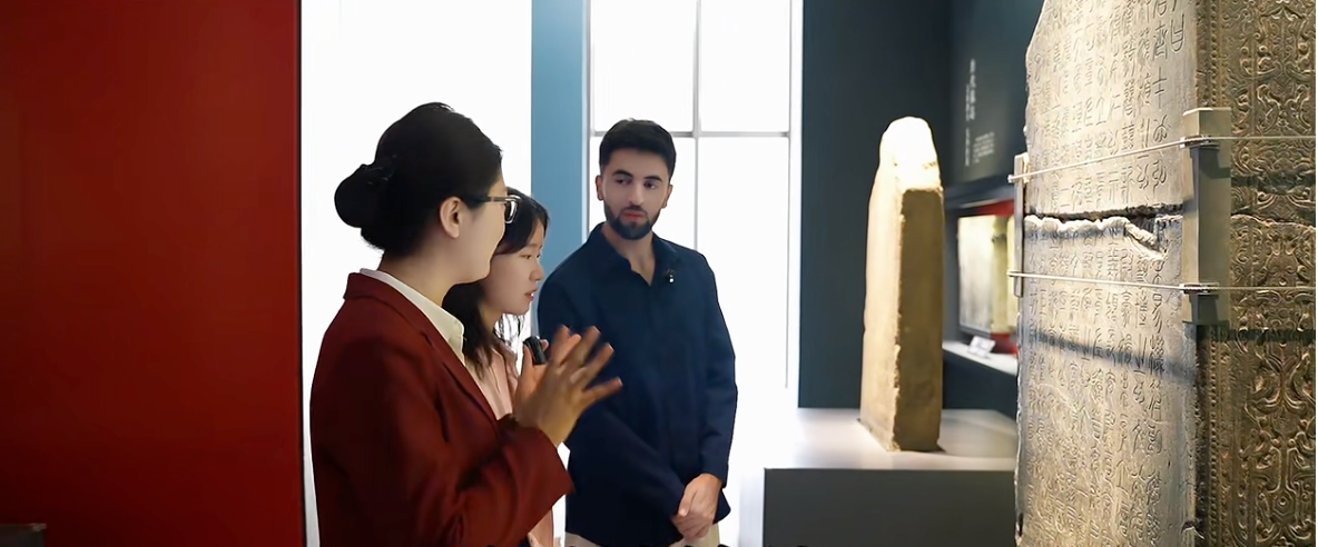 “这哪里是博物馆?分明是座用石头写就的史诗!”在西安碑林博物馆内,留学生小马感慨道。这座始建于北宋元佑二年的艺术圣殿,最初为守护唐《开成石经》而诞生,如今已发展为收藏4000余方碑石的书法宇宙。在“文明盲盒·拆出千年对话”活动中的《歪果仁的西安文博奇遇记》系列Vlog中,留学生成为文化摆渡人。
