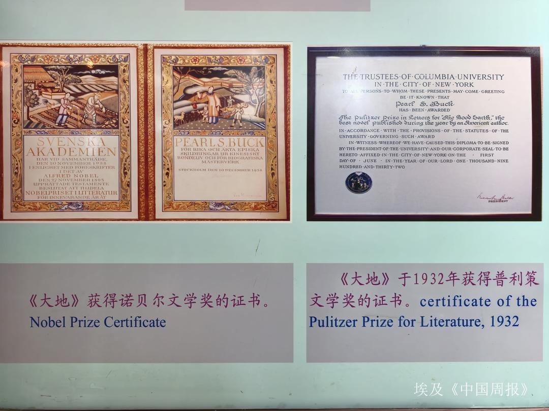 在纪念馆核心展区,1938年诺贝尔文学奖颁奖词的中英文对照展示格外引人注目。赛珍珠因“对中国农民生活丰富而真实的史诗般描写”获奖,成为美国首位获得该奖项的女性作家。