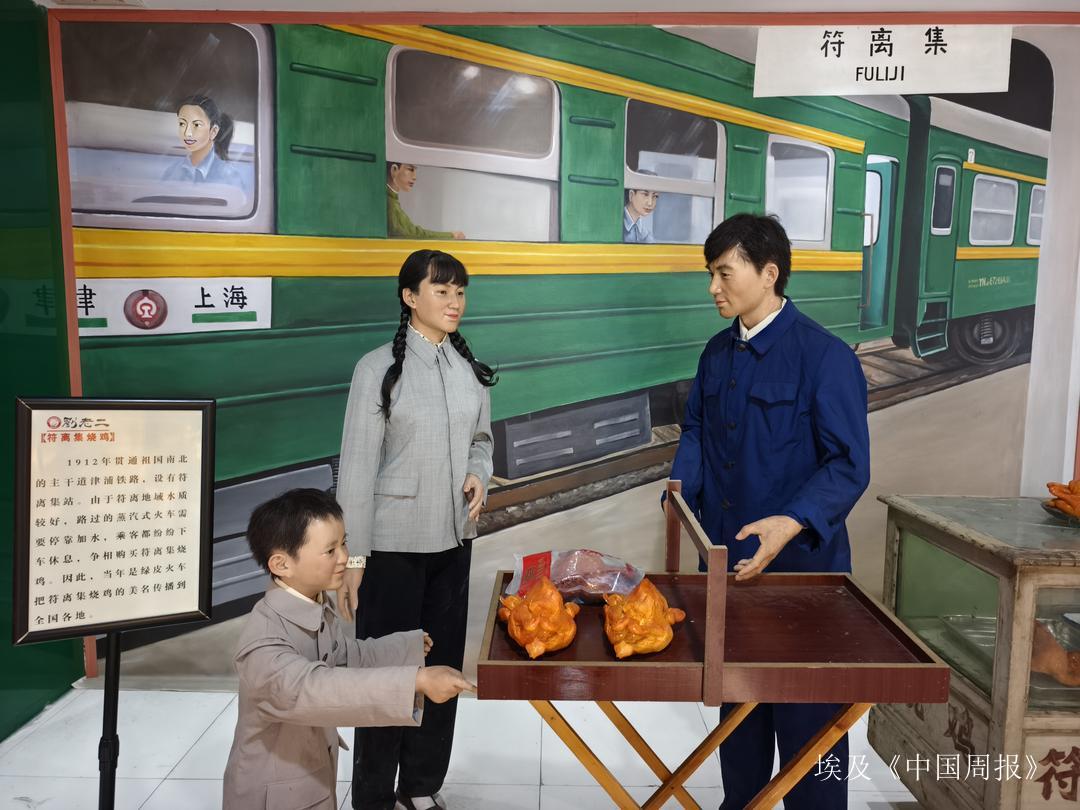有着百年历史的符离集火车站,原是津浦线进入安徽的首站,上世纪60年代并入京沪线。那时,南来北往的火车到了符离集站都得停车加水。火车一靠站,月台上就响起此起彼伏的叫卖声。不少摊贩提篮上车,逐个车厢推销烧鸡,总能在绿皮车厢里引得旅客眼馋。油亮的色泽、醇厚的口感及特殊的烹饪工艺,让符离集烧鸡乘坐着绿皮车驶向天南地北,成为家喻户晓的中国名菜之一。作为“中国四大名鸡”之一,符离集烧鸡不仅是宿州人餐桌上的常客,也是一个吸引各方来客响当当的招牌。