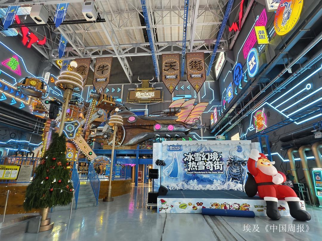 令媒体代表们震撼的是四层夔牛天街项目。这座由原8号机组发电汽轮机厂房改造而成的文商旅综合体,以《山海经》夔牛为IP,打造出高10米、宽6米、长21米的机械互动巨兽,配套的海盗船、空中轨道车等游乐设施与3000平方米商业空间相映成趣。室外45亩的夔牛公园则对老电厂烟囱进行工业风改造,建成皖北特色无动力亲子乐园,让曾经的工业“心脏”焕发新活力。
