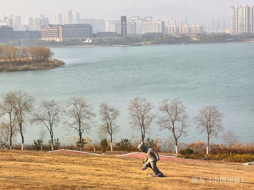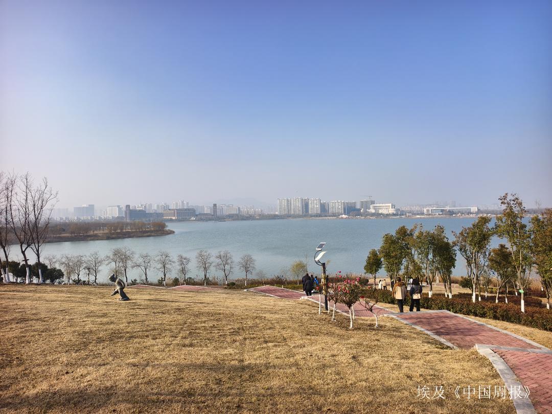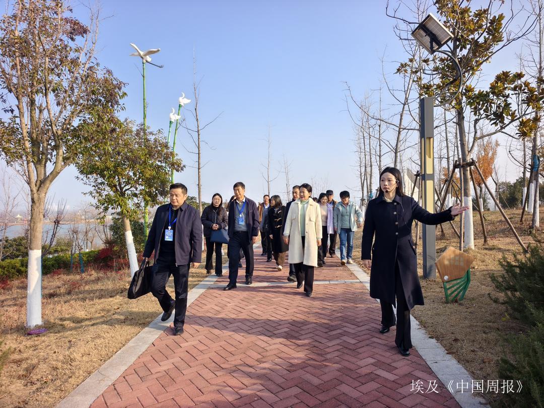 “船行湖中,两岸绿树成荫,很难想象这里曾是塌陷坑遍布的废弃地。”韩国新华报社副社长隋兴国举着相机记录湖面风光,不时定格远处掠过的水鸟与岸边错落的景观。媒体代表们乘坐游船穿行于澄澈湖面,沿途欣赏“碧水映城郭”的生态画卷,登岛后漫步于滨湖步道,在生态科普长廊了解塌陷区治理的“超前式治理”技术,感受“把废弃地变金土地”的治理智慧。站在观景平台远眺,圆梦桥将老城区与新区串联,湖畔绿地与城市建筑相映成趣,昔日“工业锈带”已彻底转型为“生活秀带”与“生态氧吧” 。