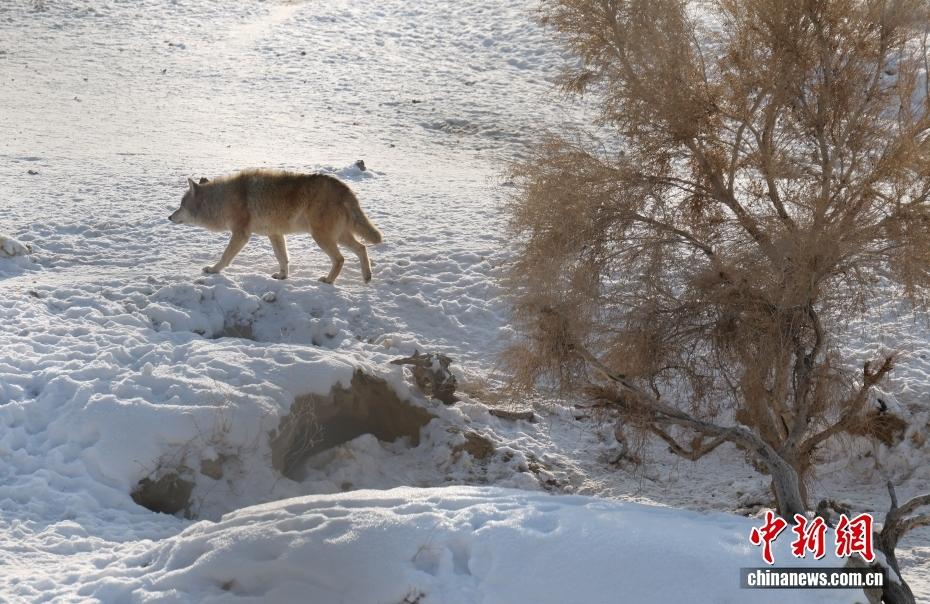 中新社发 毛建军 摄1月5日,阿勒泰海上魔鬼城的圈养狼在散步。
