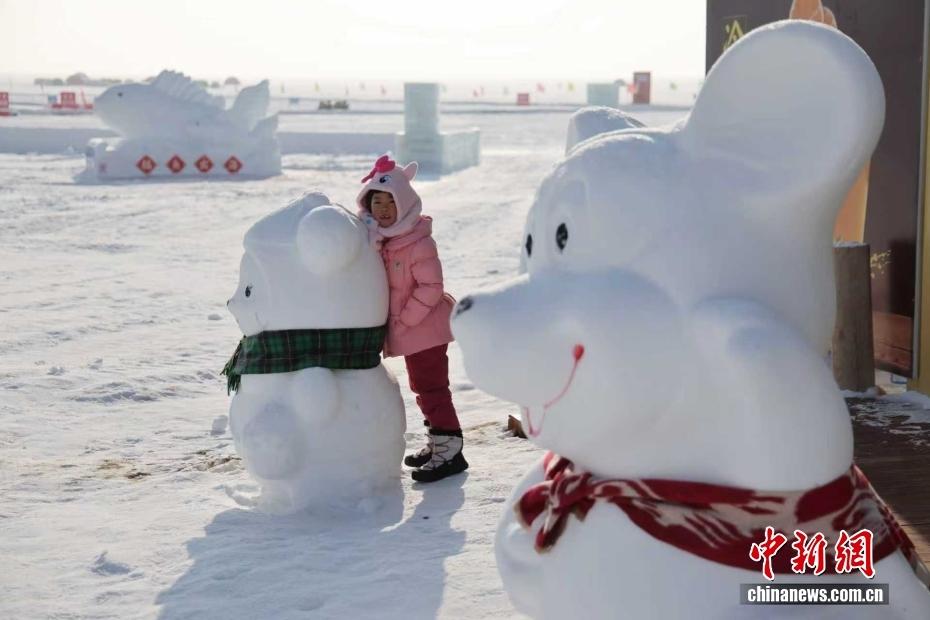 中新社发 赵迎新 摄1月5日,阿勒泰海上魔鬼城雪雕熊和企鹅翘首迎宾。