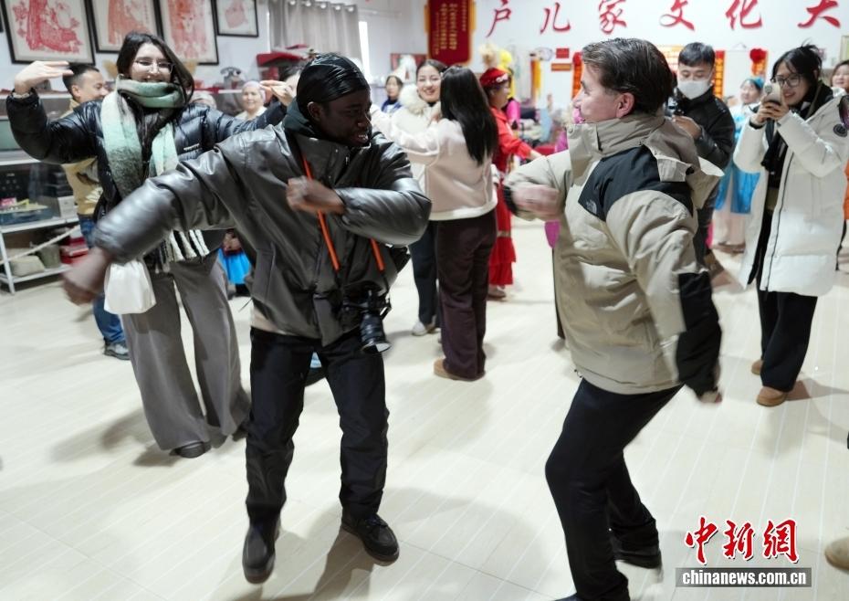 “户儿家”源于清末,是哈萨克族对甘肃、山西、陕西等省迁居红墩镇的40户汉族居民的称呼。图为来访者加入舞蹈队伍。