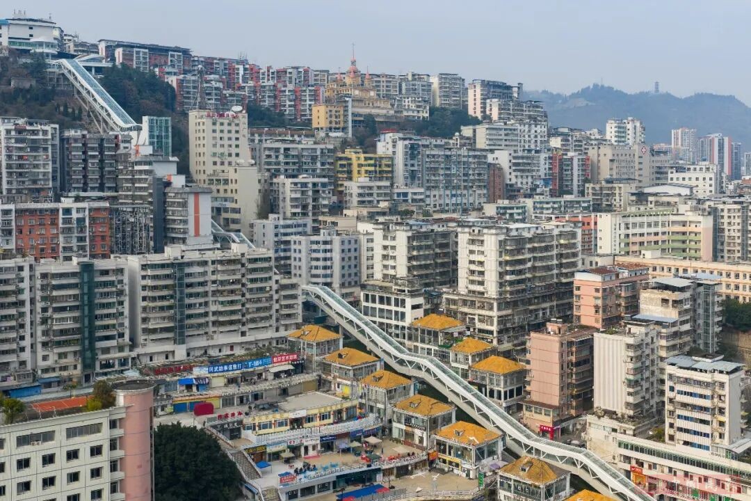 神女大扶梯位于重庆市巫山县,其依托既有纵向城市中轴线建设,是一条利用电扶梯多级提升的城市纵向交通要道。纵向总长度约905米,超越重庆皇冠大扶梯,总提升高度达240余米,相当于80层楼高。项目共设置扶梯21部、电梯8部(含天桥无障碍电梯)、自动人行道4部、人行天桥2座、跨线通道2座。建成投用后,神女大道上下段通行时间将由原来的近1小时缩短至约20分钟,极大便利市民出行和游客观光。