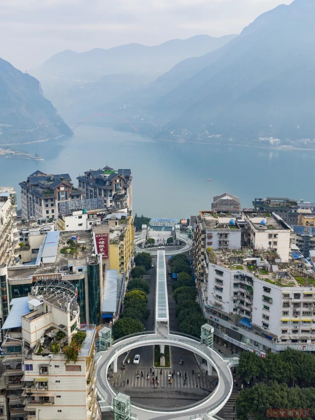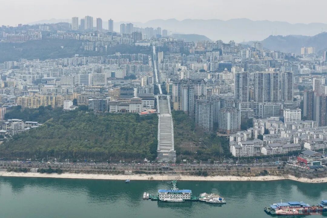 1月14日,航拍即将建成投用的巫山神女大扶梯。