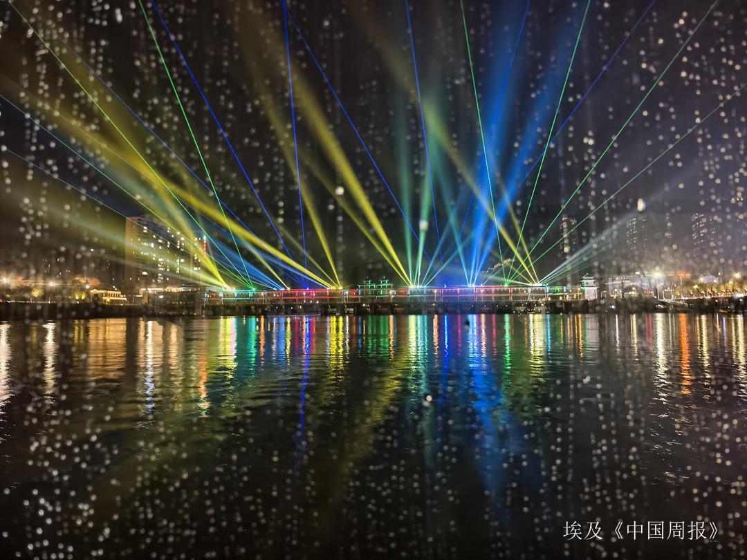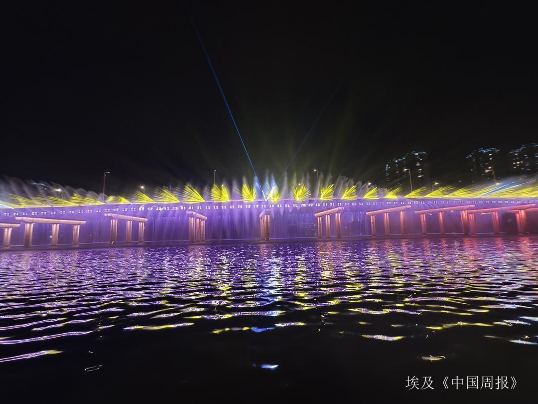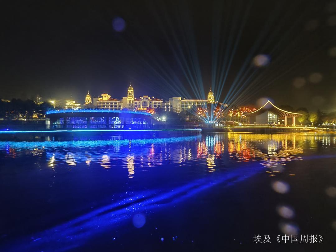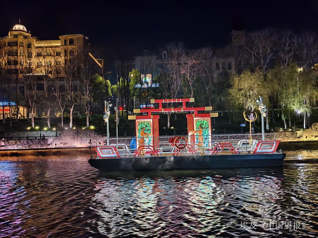 当晚8时许,采访团一行登上观光游船,从白云湖码头缓缓驶出。夜幕下的白云湖,两岸灯火璀璨,高楼霓虹与水中倒影交相辉映,勾勒出一幅灵动的水上画卷。微风拂面,波光粼粼,媒体代表们纷纷举起相机,记录下这美好的瞬间。