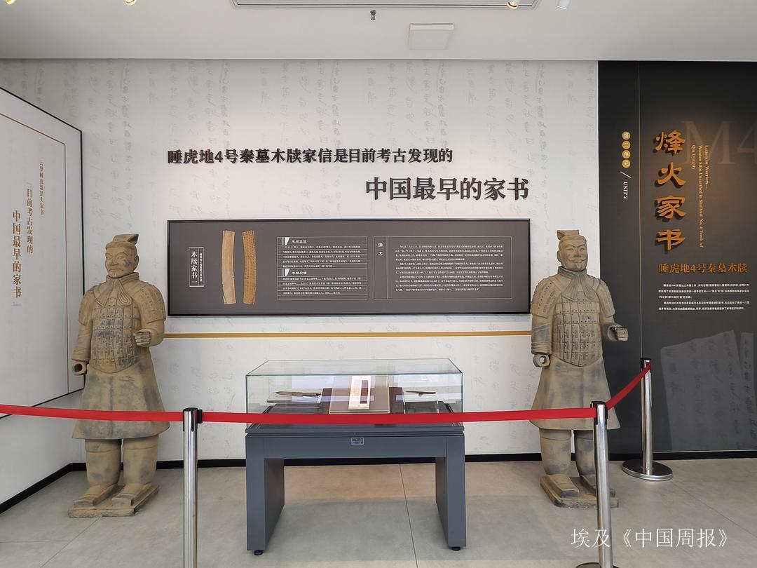 “两千多年前的士兵,在前线惦记着家里的母亲、妻子,担心有没有收到授爵文书,这种家国情怀和我们今天一模一样。”讲解员说。这封家书写于公元前223年秦灭楚前夕,比秦始皇统一中国还早两年,被称为“中华第一封家书”。2019年,这两封家书曾登上央视《国家宝藏》,感动了无数观众。