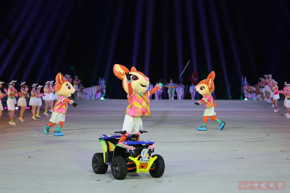 在文艺表演中,“亚亚”与黎族苗族青年欢聚嬉戏,用戏剧的方式打开剧情。开幕式总导演黄沛凌说,“亚亚”它不是一个符号、标志,而是一个能跑能跳、活灵活现,能和大家玩在一起、乐在一起的具有海南三亚特质、灵动有生命力的可爱形象。
