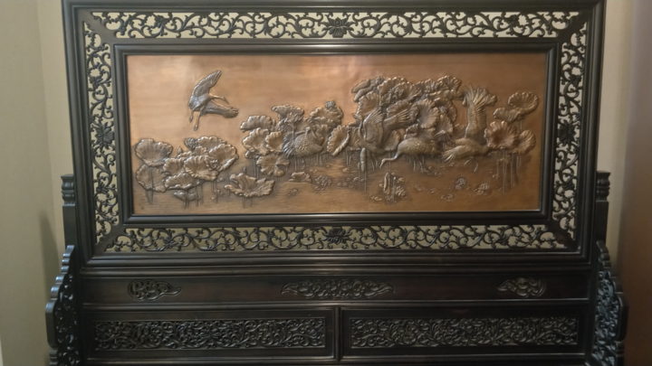 抬凿錾刻,这门金属工艺距今已有2000多年历史,始于春秋而盛于战国,后期历代都得到了传承和发展,从小生活在银匠世家的姚士荣作为非遗传承人代表,把这一中华文化瑰宝在当代得到很好地传承和弘扬,被称为苏作金属技艺的“活化石”,他能全凭一锤、一錾在金属片上“绘制”出一幅幅美妙绝伦的图画。姚士荣来到活动现场,亲自向大家介绍了传承至今已有数千年的錾刻技艺。如今,以抬凿錾刻为技艺制作的金属大件艺术品大多陈列在酒店大厅作为装饰,同时该技艺还运用于国内外宾馆餐厅的器皿、国宴选用。