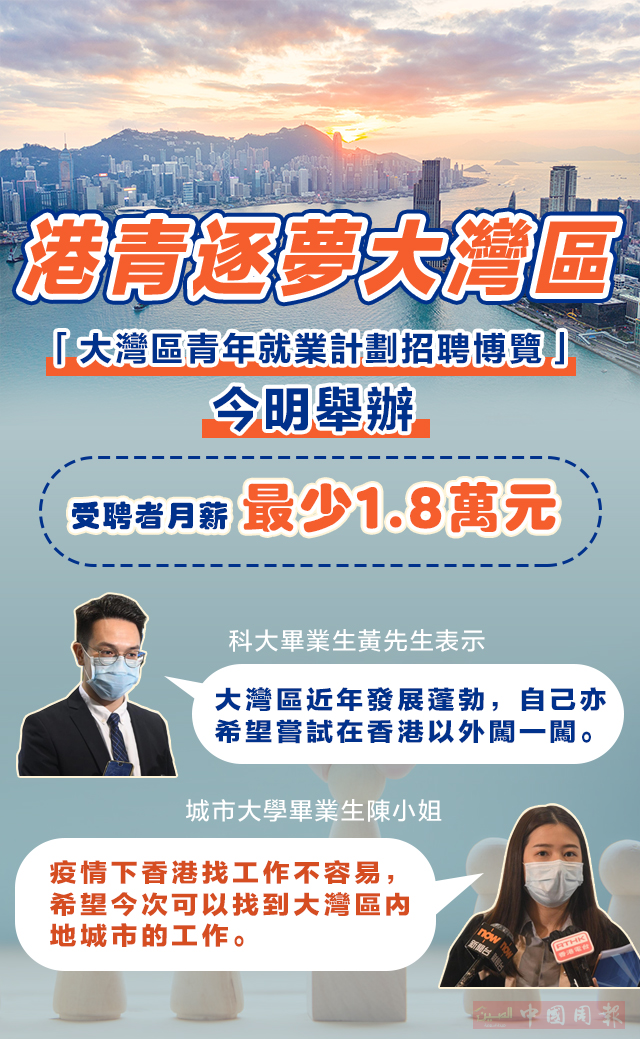 为鼓励和支持年轻人到大湾区内地城市工作和发展事业,香港特区政府推出“大湾区青年就业计划”,并于23日至24日举办“大湾区青年就业计划招聘博览”。