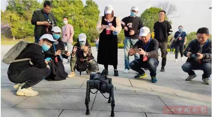 图为参访人员被机器狗所吸引。 王卫平 摄