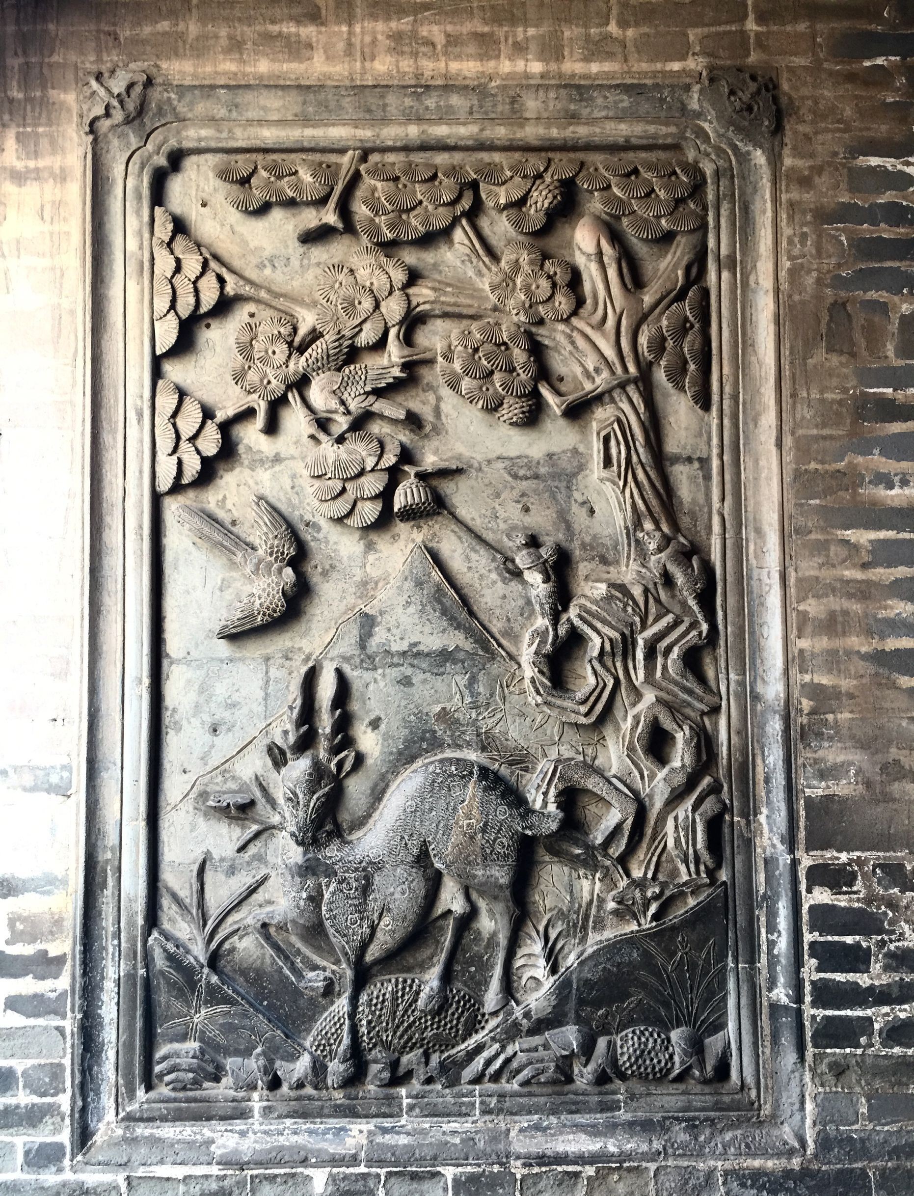 四合院每院一般占地260平方米左右,呈长方形,个别的是正方形,俗称“一颗印”。四合院由厅房,左右厢房、门房围成。厅房为头,厢房为双臂,门房为足,似人形。厅房高大宽敞,前檐多为歇檐,为供祖和设宴之所,逢婚丧嫁娶,卸掉活动屏门,设席摆宴,显然发挥了厅房设施功能。门房和厢房为起居之室,长辈兄弟居有序。村内“走马门楼”列于巷道两侧,建筑装饰十分讲究,朴实精美,三雕俱全,是雕刻艺术荟萃。家门外有上马石、拴马桩、拴马环。门枕为方形或鼓式,均为石雕。有狮子门墩、鼓儿门墩、狮子鼓儿相结合的门墩,还有形体单纯的竖立双体线雕门墩。门楼两侧有美观的砖雕峙头,内容非常丰富,有琴棋书画、梅兰竹菊、鹿兔象马,虎牛麒麟以及几何图案、万字拐、八卦图等,更为夺目的是门额题字,或木雕或砖刻,名家书写,相当讲究,成为书法艺术的展示。从内容上看,大致有炫宗耀祖、伦理道德、理想追求三类。大门内照墙多为砖雕,主题画面题材多样,有“鹿鹤同春”、“封(蜂)候(猴)挂印、“五福(蝠)捧寿”等等,有的则一个大“福”字或大“寿”字。院中家训砖雕,多在厅房歇檐两侧山墙上,内容多为道德修养之类,文化气氛浓厚。