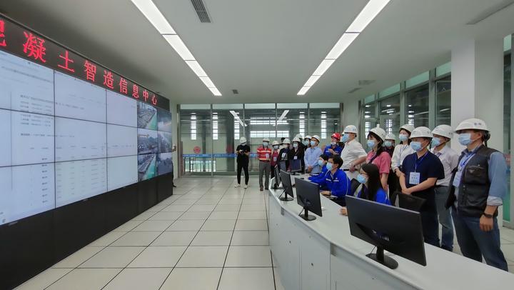 来到车间内部,生产线采用的电动布料及振捣设备由计算机全自动控制,可根据产品长度、宽度、厚度这些数据计算需要浇筑的混凝土用量。更为重要的是,厂内采用了智慧化生产管理系统,能提供基于云端、数据驱动、灵活可配置的多平台实时协同,通过车间大屏及管理看板,实现数字化、信息化车间管理。
