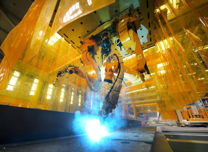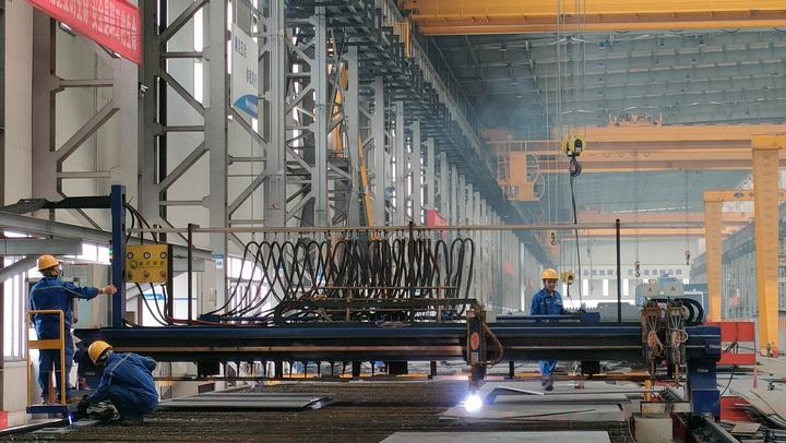 走进该生产基地,天窗明亮、走廊宽敞,一台台加工设备有序排列,构成一道道精密的工业生产线。该基地负责人魏建峰介绍,该基地的生产线拥有国内最先进的数控切割机,几乎可以实现任何异形零件边缘坡口的切割与加工的切割,并配备具有国际领先的技术水平的自动化焊接机器人。同时,机器人还拥有电弧跟踪和焊丝接触传感两大先进技术,可以轻松“擦掉”焊接后的焊缝,“祛疤”不留痕。