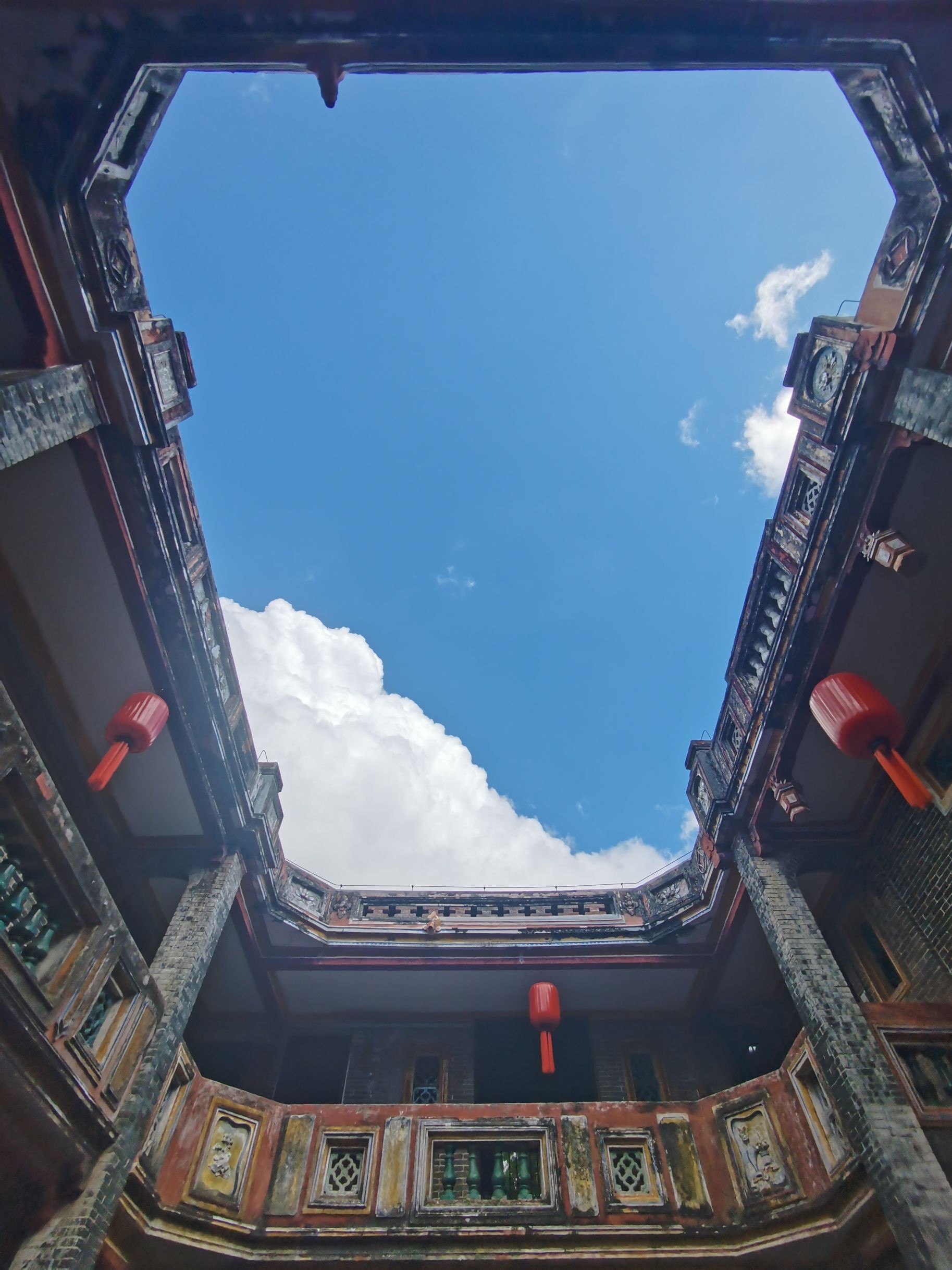 踏进宅院,看到的是个封闭式的天井,仰头一望,二楼的雕花围栏绕天井一周,透出奢华和富贵。天井两侧有横廊楼阁多间,四周有厨房、柴房、卫生间、浴室、猪舍等。