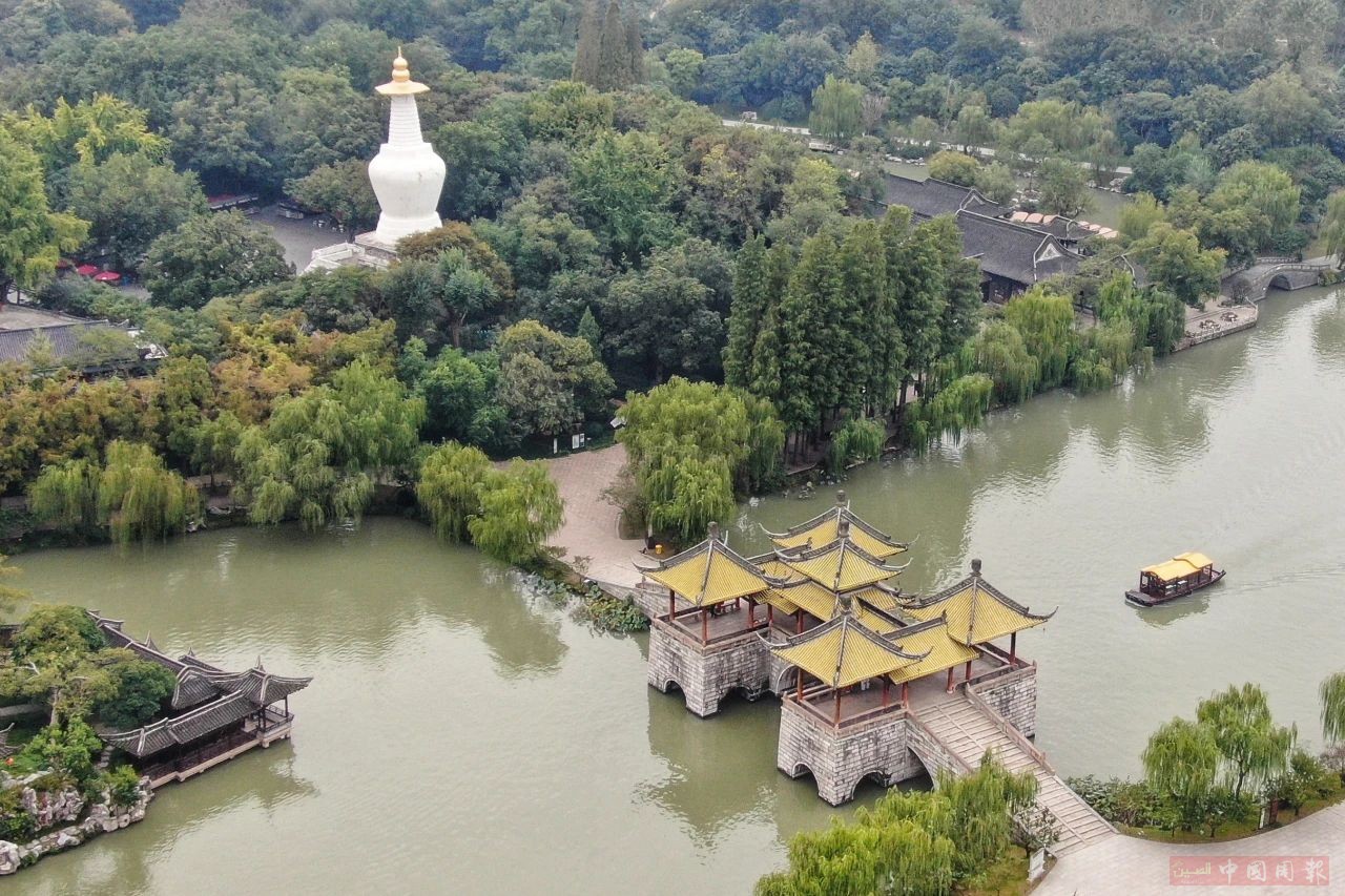 航拍扬州瘦西湖秋日景致。(无人机照片)